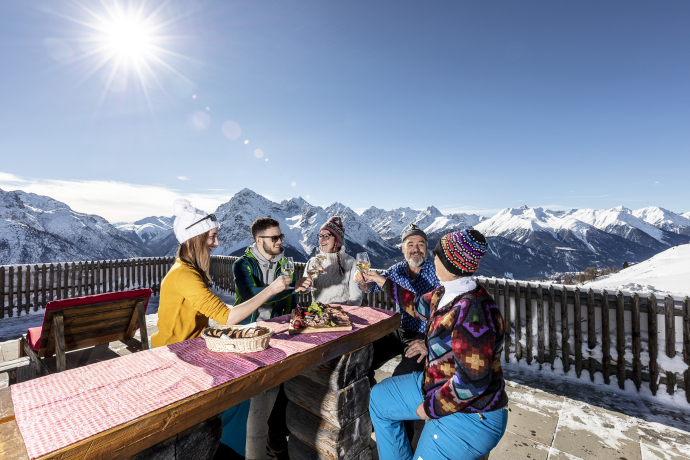 - Wandern Sie auf dem Höhenweg von Motta Naluns nach Prui. Danach geht es zu Fuss, mit dem Schlitten oder der Sesselbahn nach Ftan.