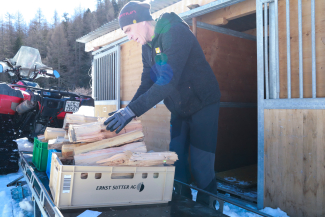 Eine Kutsche kommt mit neuen Gästen im Dorf an. Die Strasse, die von S-charl ins Unterengadin führt, ist im Winter für den motorisierten Verkehr geschlossen. Wie schafft es Dominique dabei wöchentlich Lebensmittel für seine Gäste zu holen? Seine Lieferanten deponieren einen Stapel Lebensmittel bei der Barriere an der Wintersperre bei «Valang Zondrus». Diese packt Dominique in seinen Pick-Up und bei Sasstaglià wiederum auf seinen Quad. Damit kann er auch auf der schneebedeckten Strasse nach S-charl fahren. «Es ist ein langer Weg», erklärt Dominique. «Deswegen ist eine gute Organisation das A und O, da man nicht kurz in einen Laden gehen kann, wenn etwas fehlt.»