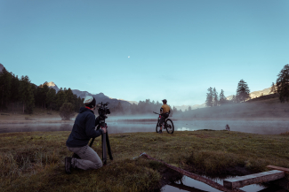 Snowboarder und Mountainbiker