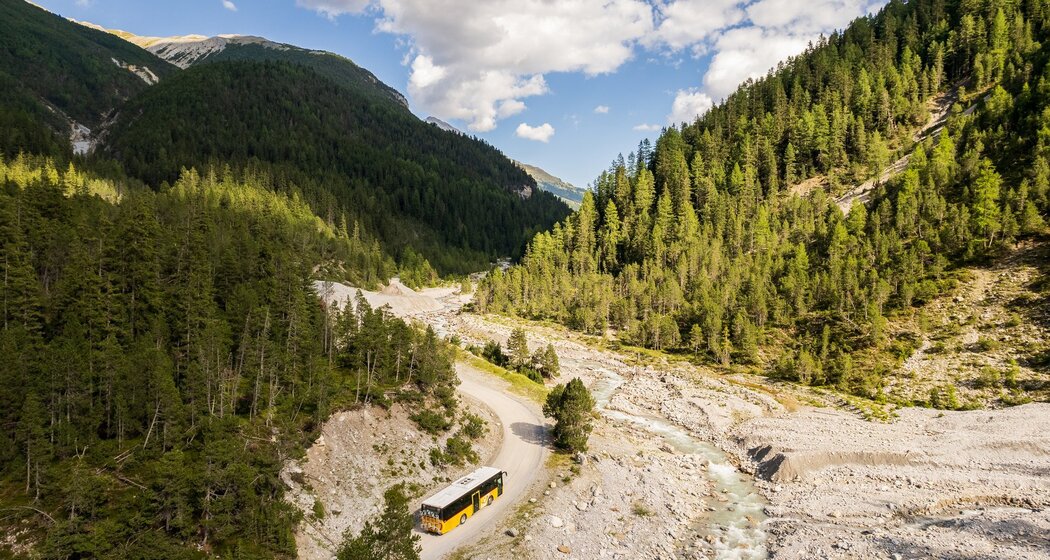 Die Königsetappe der Weitwanderung beginnt mit der Busfahrt nach S-charl. Hier beginnt der anspruchsvolle Anstieg zur Fuorcla Sesvenna.