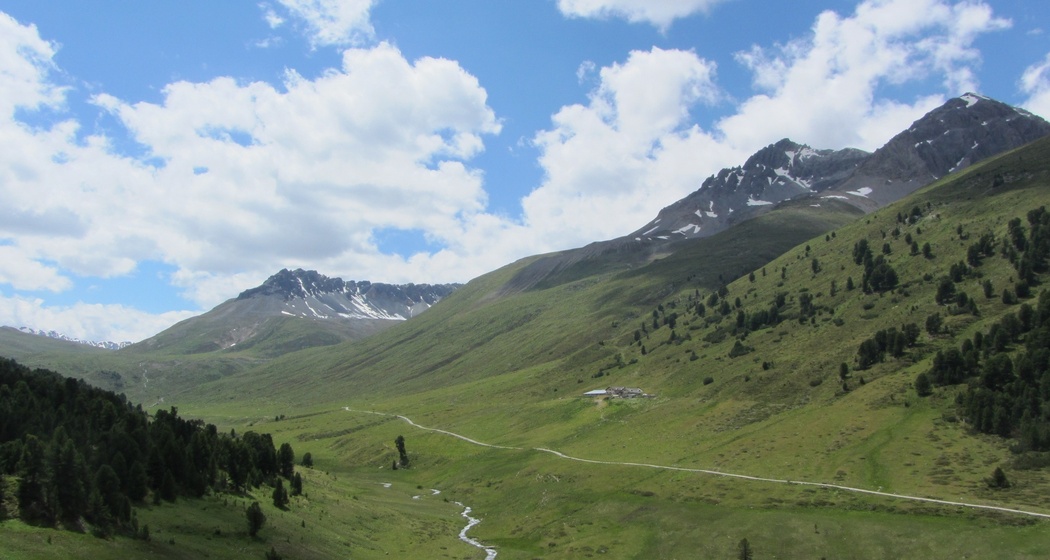 Sur des chemins alpins et de cols paisibles – à partir de l'arrêt de bus au milieu du petit village de montagne de S-charl (à 1800 m d'altitude), le chemin monte régulièrement à travers la forêt d'arolles la plus haute d'Europe et Alp Astras jusqu'au Pass da Costainas (à 2251 m d'altitude). Brève descente raide jusqu'à l'Alp Champatsch. Les bâtiments alpins de Champatsch ont été reconstruits en 1986; les anciennes maisons de 1825 sont aujourd'hui exposées au musée en plein air Ballenberg. Suit une descente régulière jusqu'à Lü.