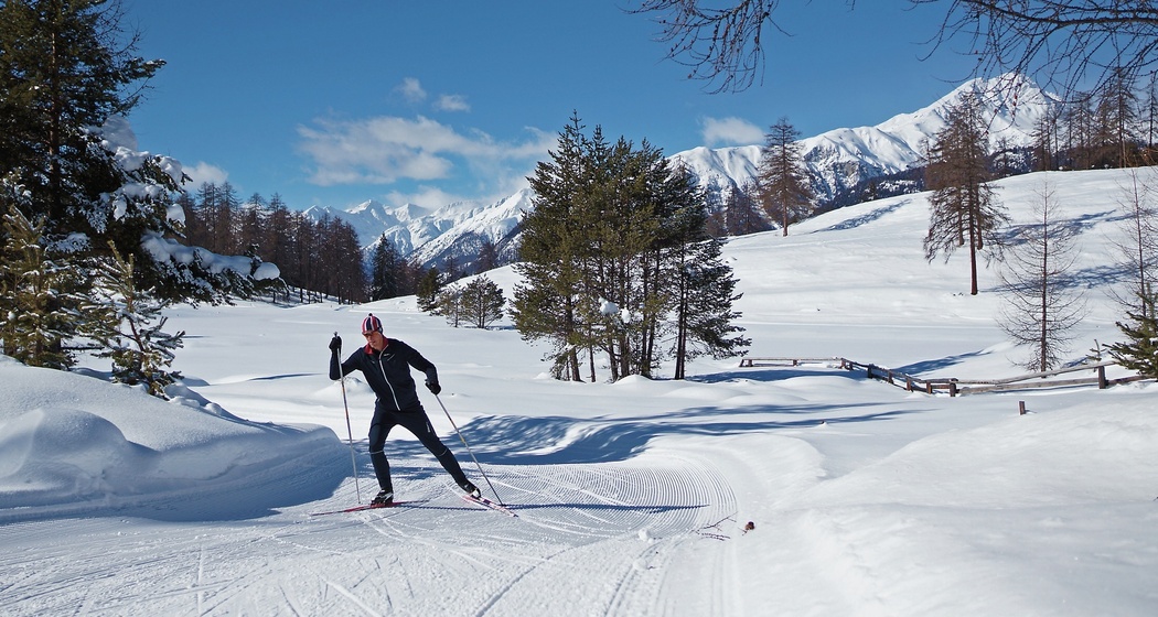 Piste circulaire située dans un cadre de rêve avec quelques courtes montées et descentes autour du Lai Nair sur un terrain généralement facile. L'accès direct au départ de la piste n'est pas possible avec les transports publics. (trajet à pied d'environ 20 min ; parking gratuit disponible à proximité de la piste de ski de fond sur la route en direction d'Avrona).